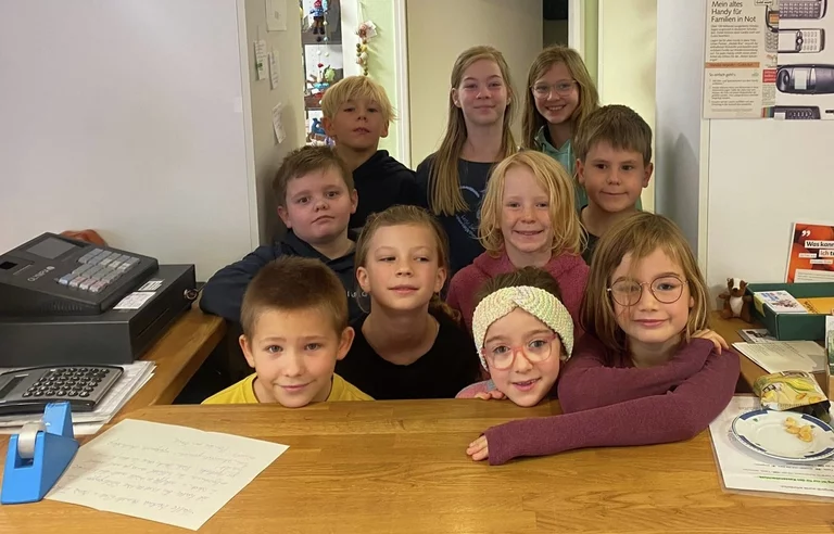 Mädchen und Jungen der Fairtrade-AG der Marienschule im Weltladen