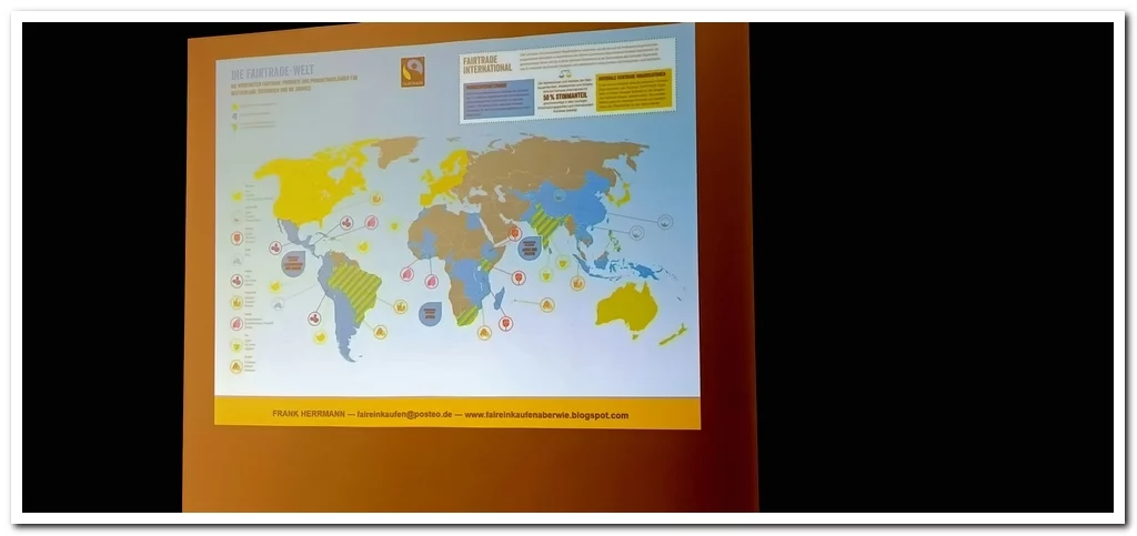 Anschaulich stellte Frank Herrmann in seinem Vortrag den Zusammenhang von Wohlstand und CO2-Ausstoß dar. Er erläuterte, wie der daraus entstehende globale Klimawandel sich insbesondere für die Bevölkerung in den ärmeren Ländern des globalen Südens auswirkt, während sie selbst kaum oder gar nicht für die Ursachen verantwortlich ist: Dürren, Feuer, Überschwemmungen und Stürme bedrohen die Menschen auf existenzielle Weise, bringen schon jetzt ertraglose Böden, vollkommene Ernteausfälle, Hunger und führen zunehmend zu Fluchtbewegungen. Im Weiteren zeigte Herrmann in seinem Vortrag anhand von Beispielen auf, welchen Beitrag unter anderem der Faire Handel zur Umsetzung von Klimagerechtigkeit leistet, wie sich Unternehmen sowie die Politik einbringen müssen und warum wir alle mitwirken können, um das Entwicklungsziel 13 für nachhaltige Entwicklung der Vereinten Nationen umzusetzen.